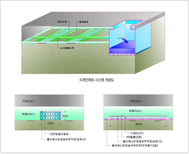 | 드레인매트 자연 배수시스템 |